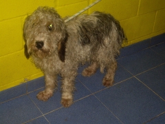 Recollido en Santiago de Compostela, chega moi feble.