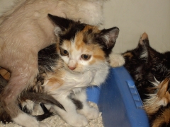 Atopada con tres irmáns máis na Choupana. Teñen mes e medio e son asustadizos.