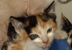 Atopada con tres irmáns máis na Choupana. Teñen mes e medio e son asustadizos.