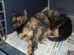 Atopada no monte de Santas Mariñas. Parece ter espasmos, pode ser debido a unha intoxicación. Está gordiña e é nova.
