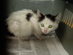 Recollida en Santiago de Compostela. Parece unha gata caseira e chega ferida.