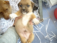 É dunha camada de 7 cans que chegan coa súa nai, 3 femias e 4 machos, moi parasitados pero gordiños. A nai fai un buraco na terra para amamantalos.