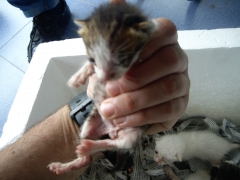 Recollido en Santiago de Compostela, chega moi feble.
