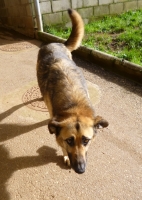 Por enfermidade do dono non a poden ter. Foi adoptada no Refuxio. Está moi asustada.