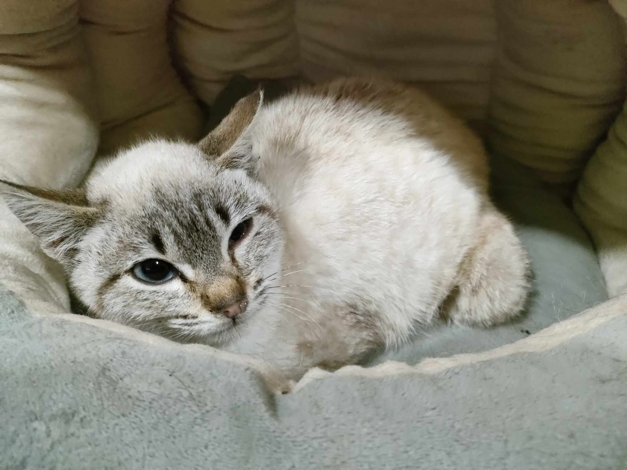 Recollida en Santiago de Compostela. Parece unha gata caseira e chega ferida.