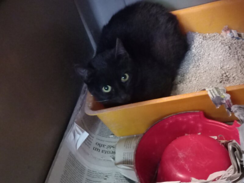 Recollido en Santiago de Compostela, no portal dun edificio. É bastante medroso.