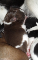 Atopada xunto a súa nai e irmáns. Aínda non ten os ollos abertos.