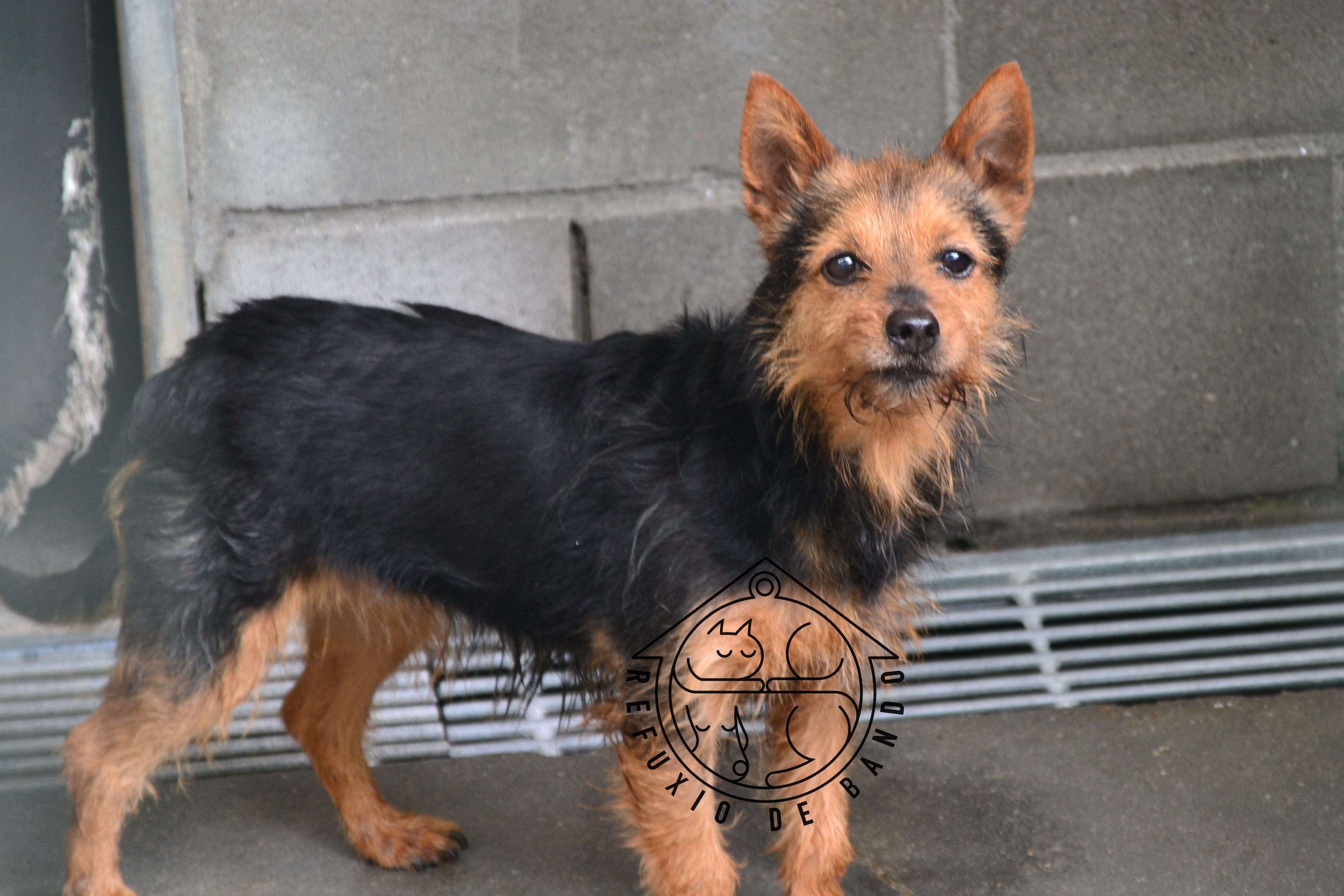 Recollido en Santiago de Compostela, chega moi feble.