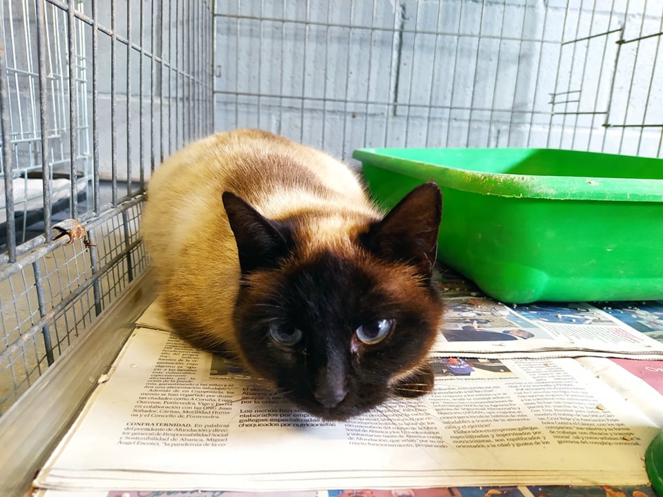 Recollida en Santiago de Compostela. Parece unha gata caseira e chega ferida.
