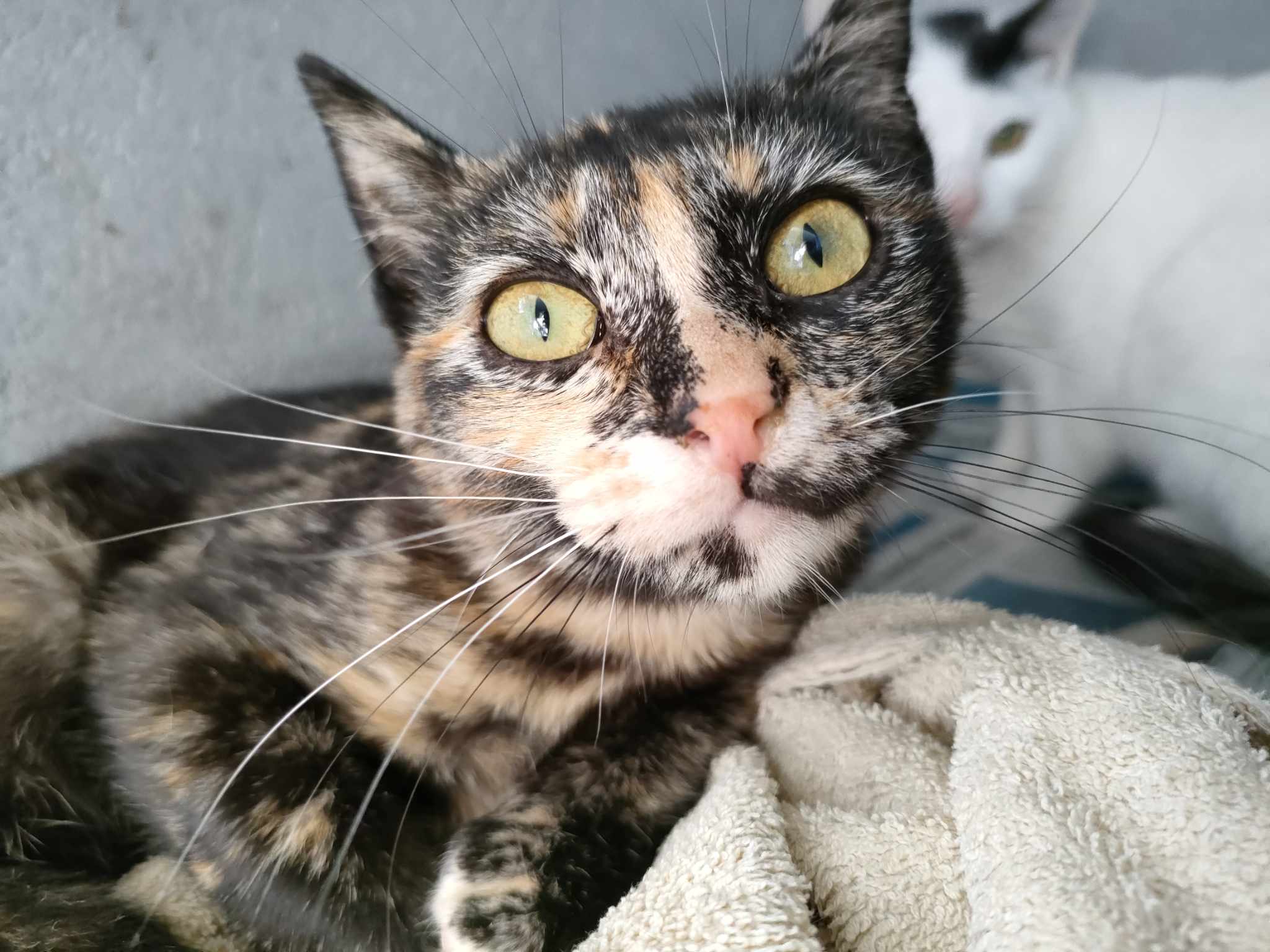 Recollida en Santiago de Compostela. Parece unha gata caseira e chega ferida.