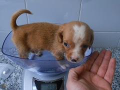 Atopados en Teo, na leira dun particular, a nai non a poden coller e recollen a súa camada de 6 cativos, 4 femias e 2 machos de apenas un mes, chegan moi sucios e parasitados. Con moita fame.