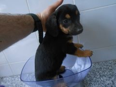 Atopados en Teo, na leira dun particular, a nai non a poden coller e recollen a súa camada de 6 cativos, 4 femias e 2 machos de apenas un mes, chegan moi sucios e parasitados. Con moita fame.