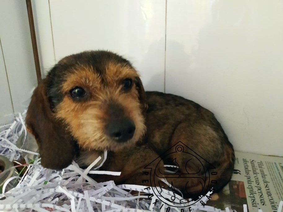 Recollido en Santiago de Compostela, chega moi feble.