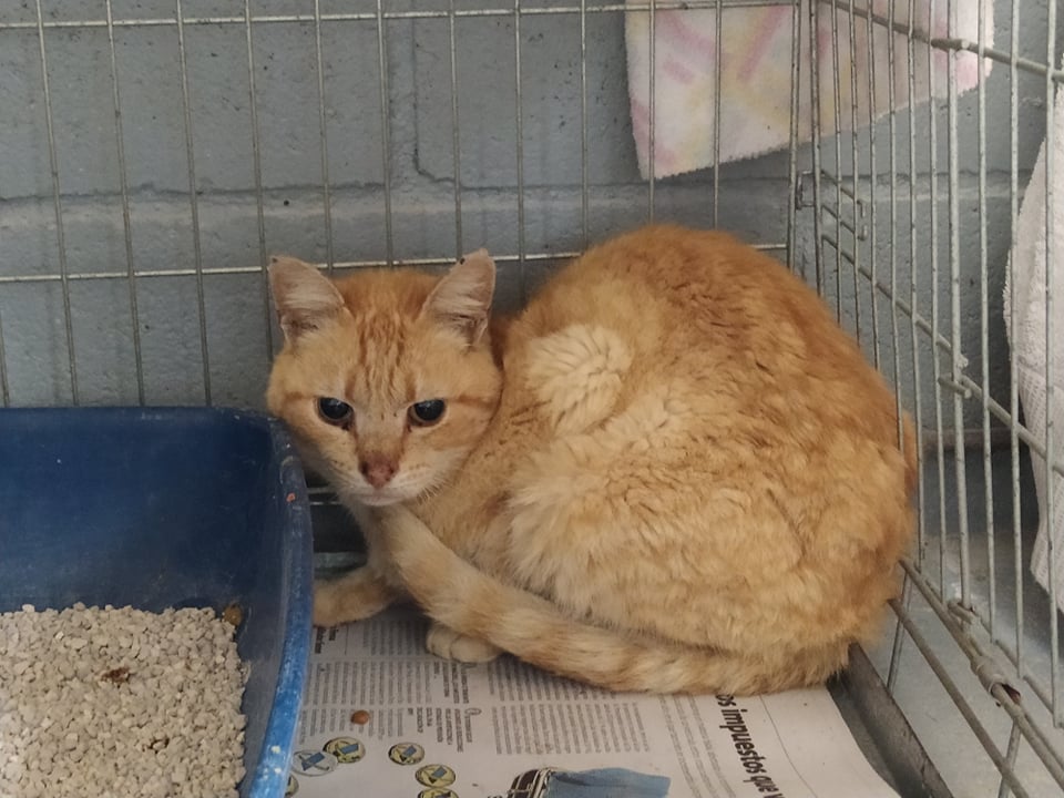 Recollido en Santiago de Compostela. Chega moi delgado e con medo.