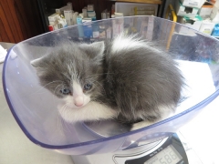 Recollida en Santiago de Compostela. Parece unha gata caseira e chega ferida.