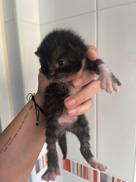 Recollido en Santiago de Compostela, chega moi feble.