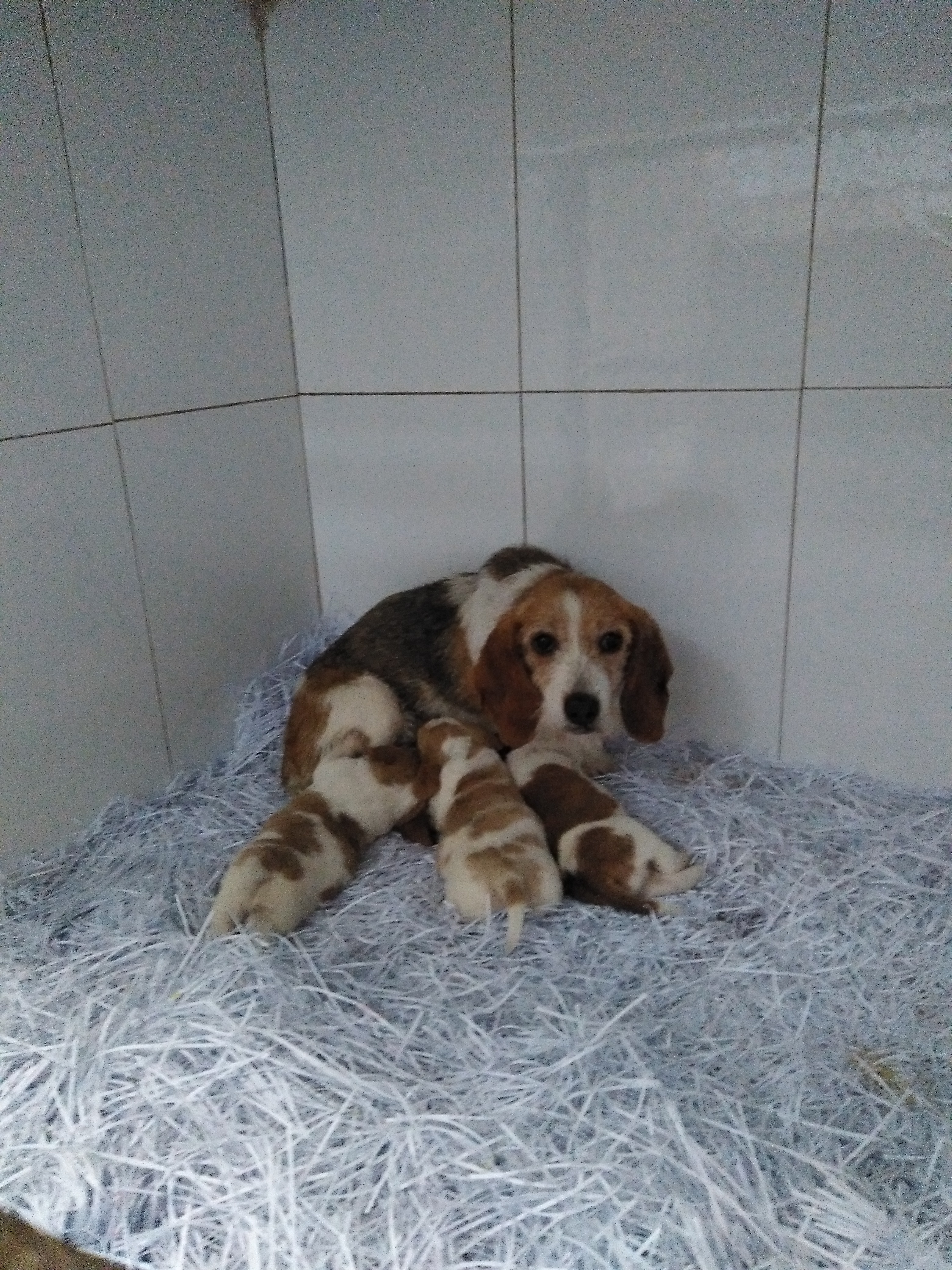Atopada en Teo cos seus cativos, sube polo Servicio de Lacería. Tipica nai de camada primaveral. Nai de 209-18 Winston, 210-18 Bonie, 211-18 Karina.