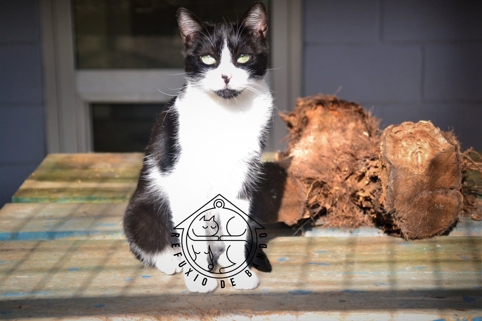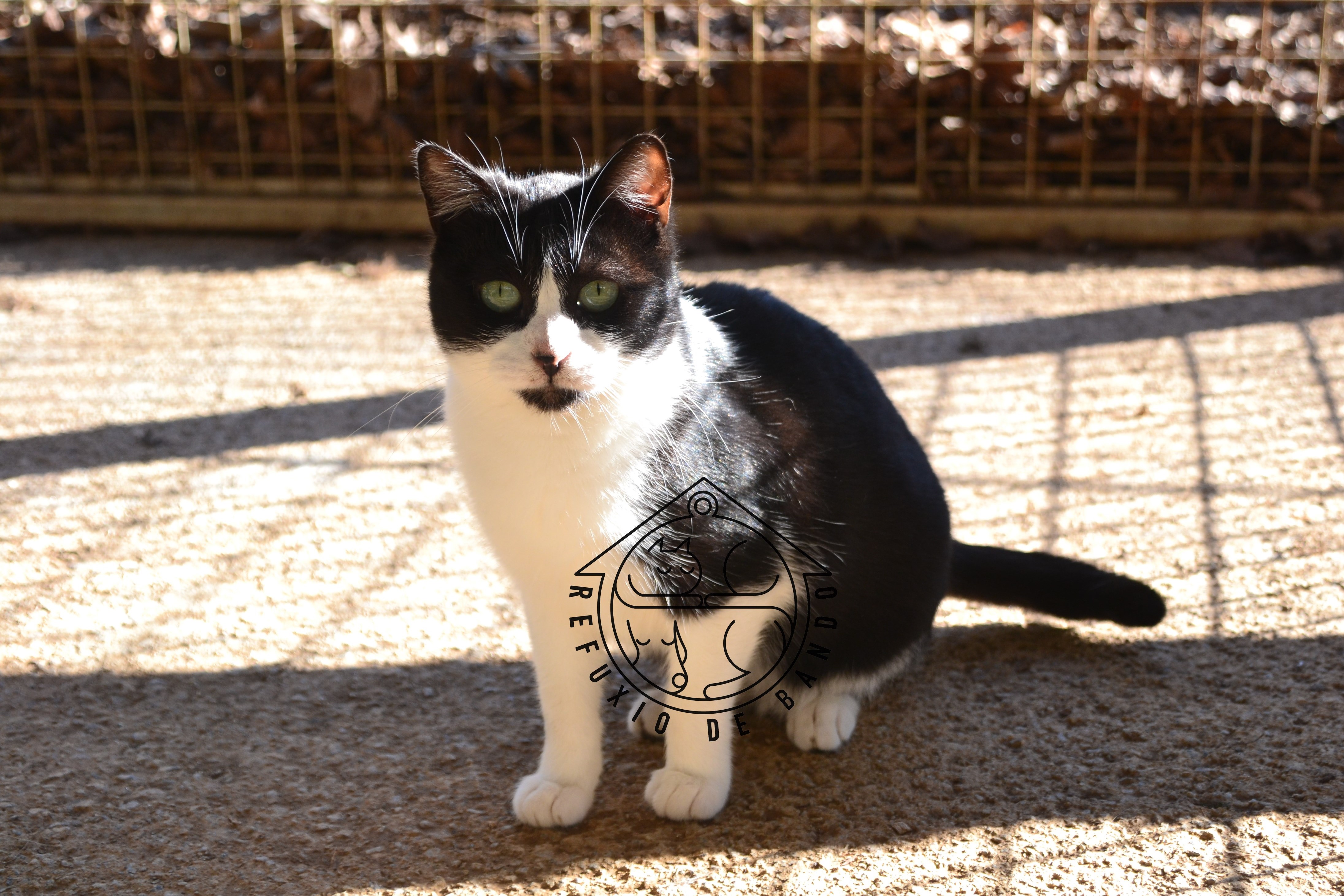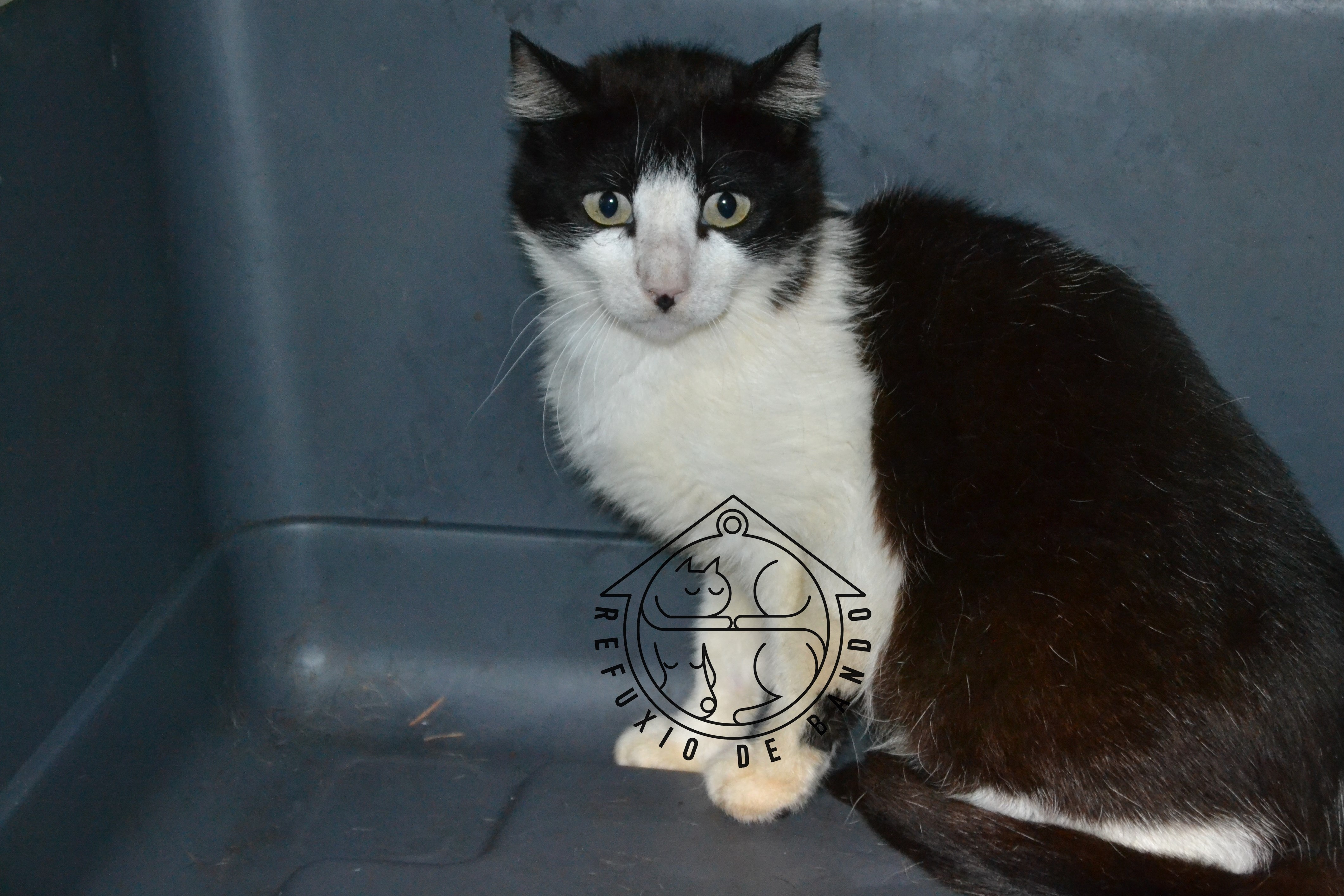 Chegou a primeiros de xuño xunto coa súa nai Alexia e unha camada de varios gatiños. Todos eles viñeron da zona de Cancelas (Santiago de Compostela), moi parasitados e con problemas respiratorios. É unha gatiña nova, algo tímida se non coñece pero que se deixa querer rapidamente. É moi curiosa, agradecida e lévase ben con outros gatos. Estamos seguros de que se alguén se fixa nela e lle dá unha oportunidade, non se vai arrepentir.