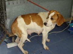 Atopada coa súa camada de 8 cans, 5 femias e 3 machos, en Barreiro (A Sionlla). Estaban debaixo dunha silveira.