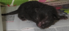 Atopado coa súa nai e 7 irmáns máis dentro dun contedor de lkixo, cheos de xel de baño, preto de Conxo.A camada ten apenas 5 días.