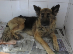 Recollido en Santiago de Compostela, chega moi feble.