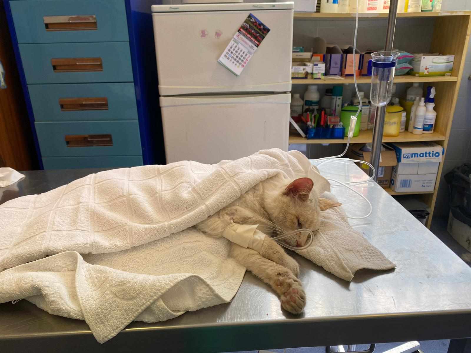 Recollido en Santiago de Compostela, chega moi feble.