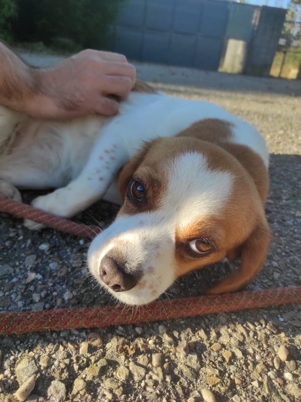 Recollida en Conxo en moi malas condicións. É bastante medrosa.