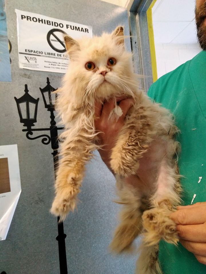 Recollido en Santiago de Compostela, chega moi feble.