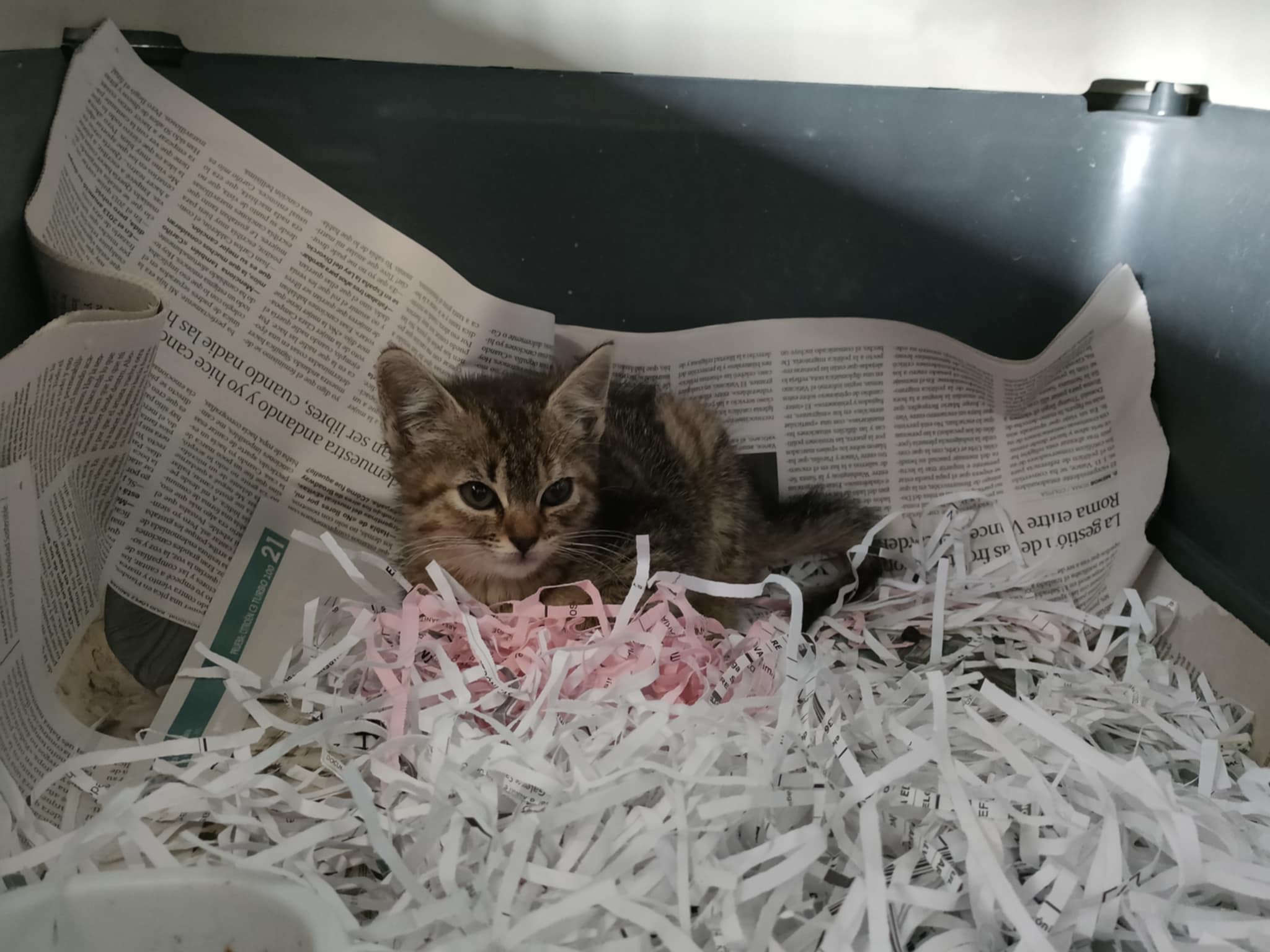 Recollido en Santiago de Compostela, chega moi feble.