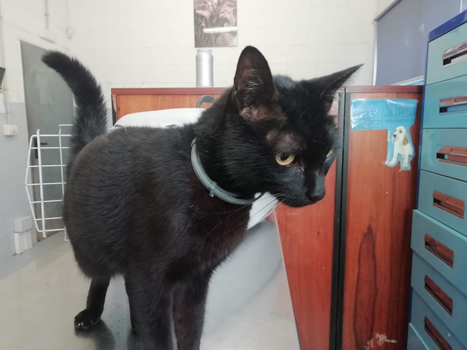 Recollida en Santiago de Compostela. Parece unha gata caseira e chega ferida.