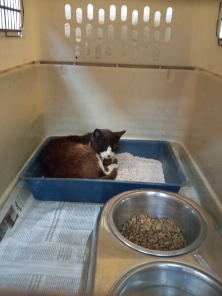 Recollido en Santiago de Compostela, bastante feble. É un gato sociable.