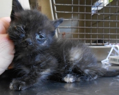 Atopados polo Sar o día de S. Xoan, deshidratado xunto a súa irmán, con carrachas, desnutrida. Os olliños pechados con infección.