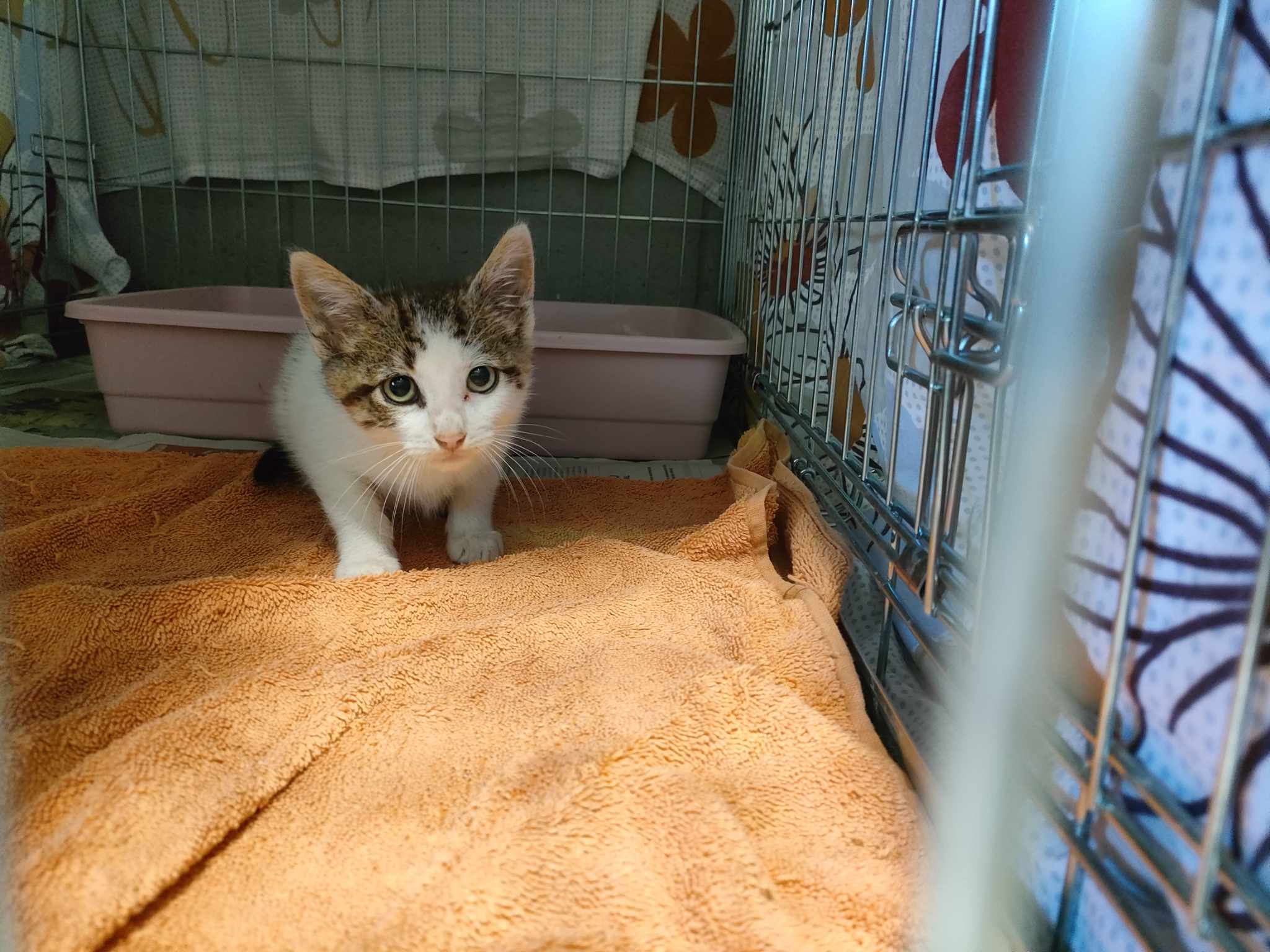 Recollido en Santiago de Compostela, é algo medroso.