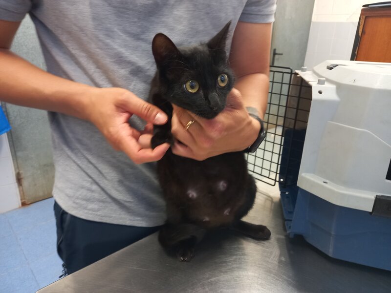 Recollida en Santiago de Compostela. Parece unha gata caseira e chega ferida.