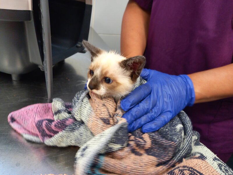 Recollida en Santiago de Compostela. Parece unha gata caseira e chega ferida.