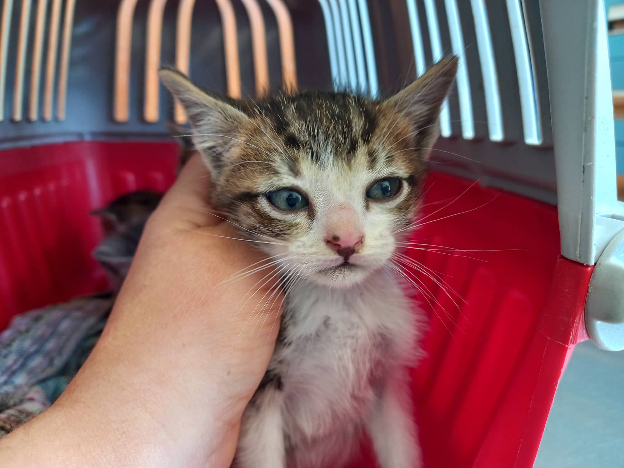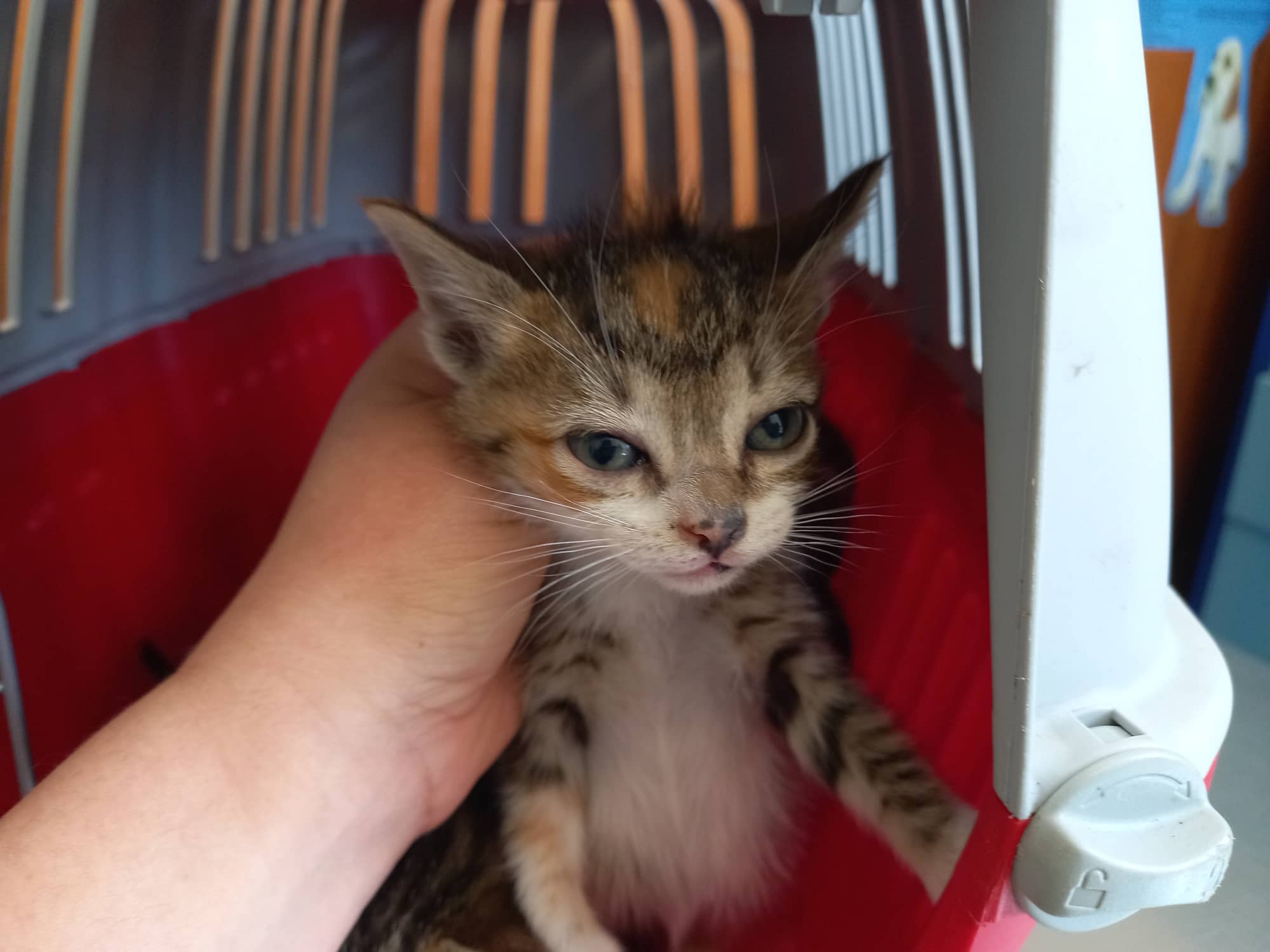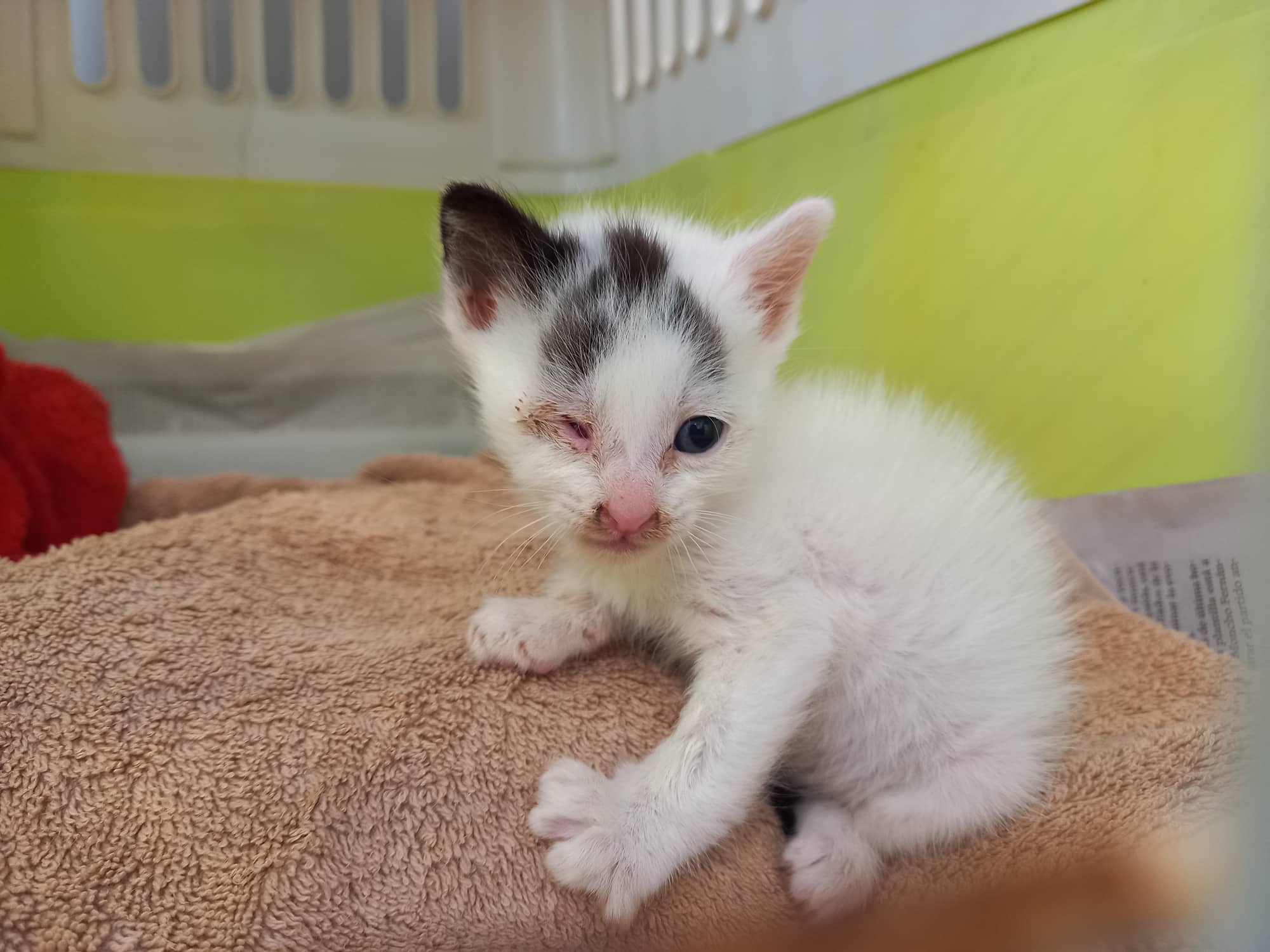 Recollido na zona de Vilar de Grixoa (Santiago de Compostela). Chega ferido e asustado, pero parece un gato sociable.