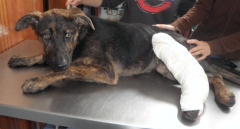 Atopado na Sionlla, facía varios días que estaba pola zona. É un cachorro aínda e ten unha pata rota.