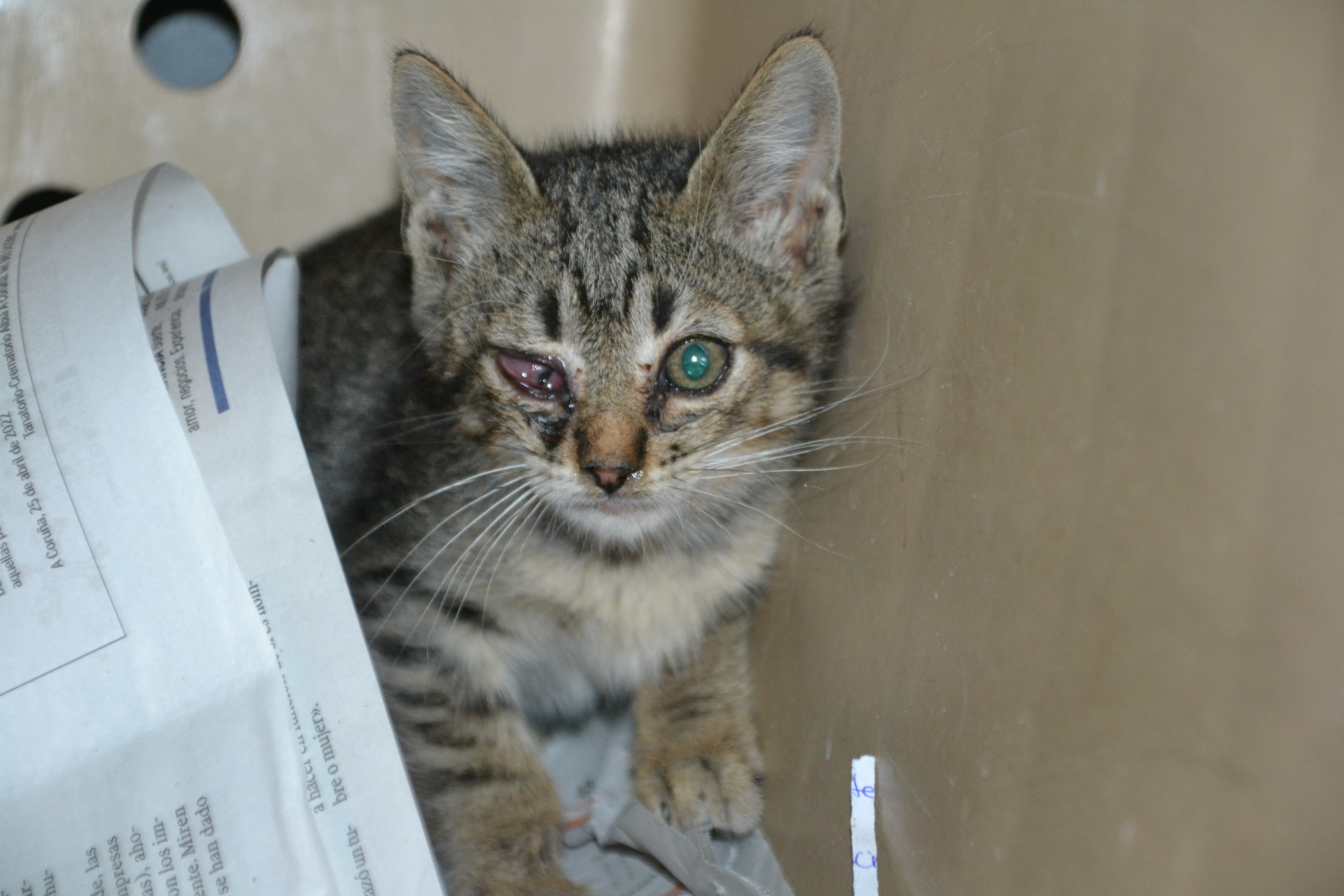 Recollido en Santiago de Compostela, chega moi feble.