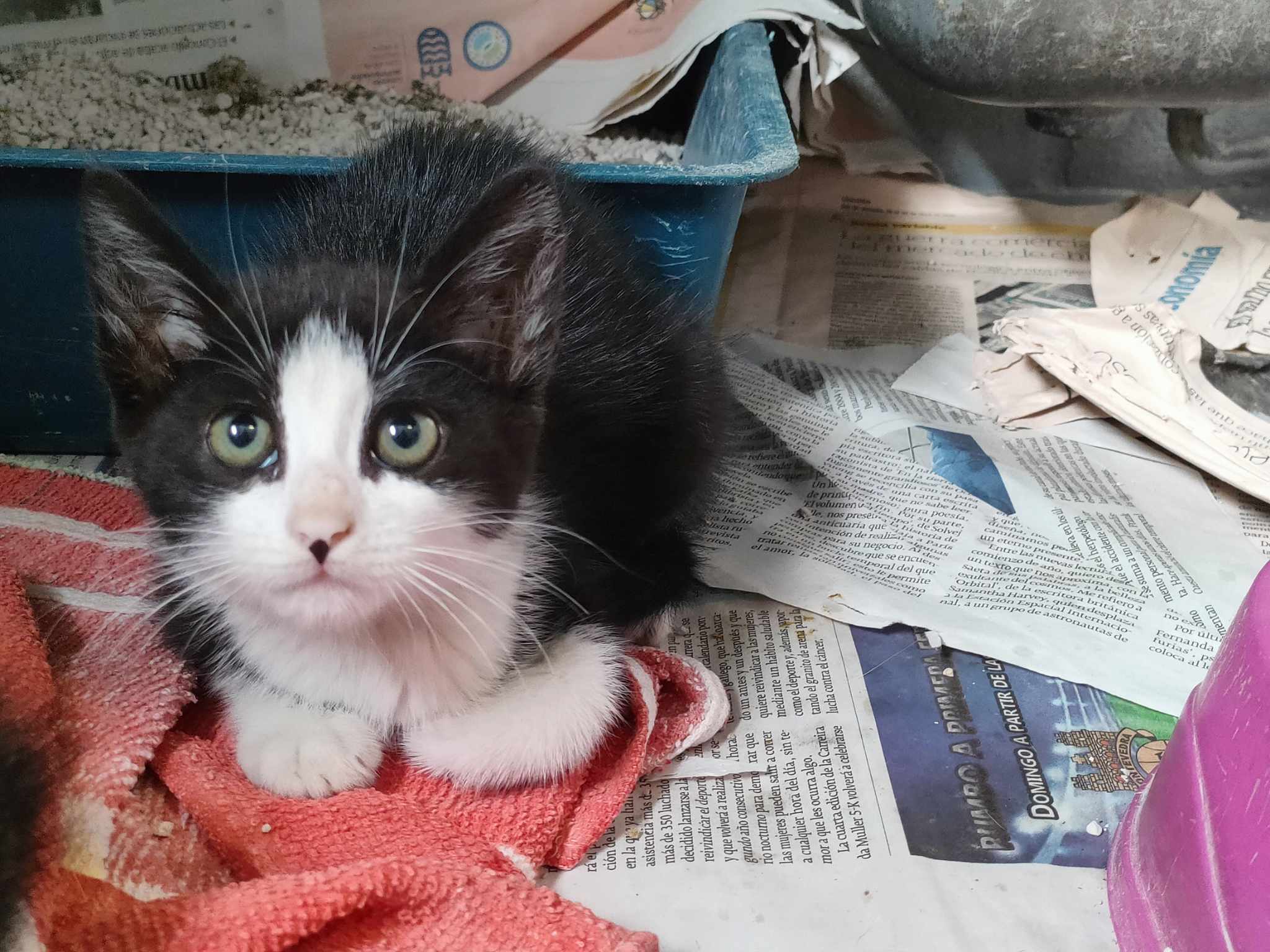 Recollido en Santiago de Compostela, chega moi feble.