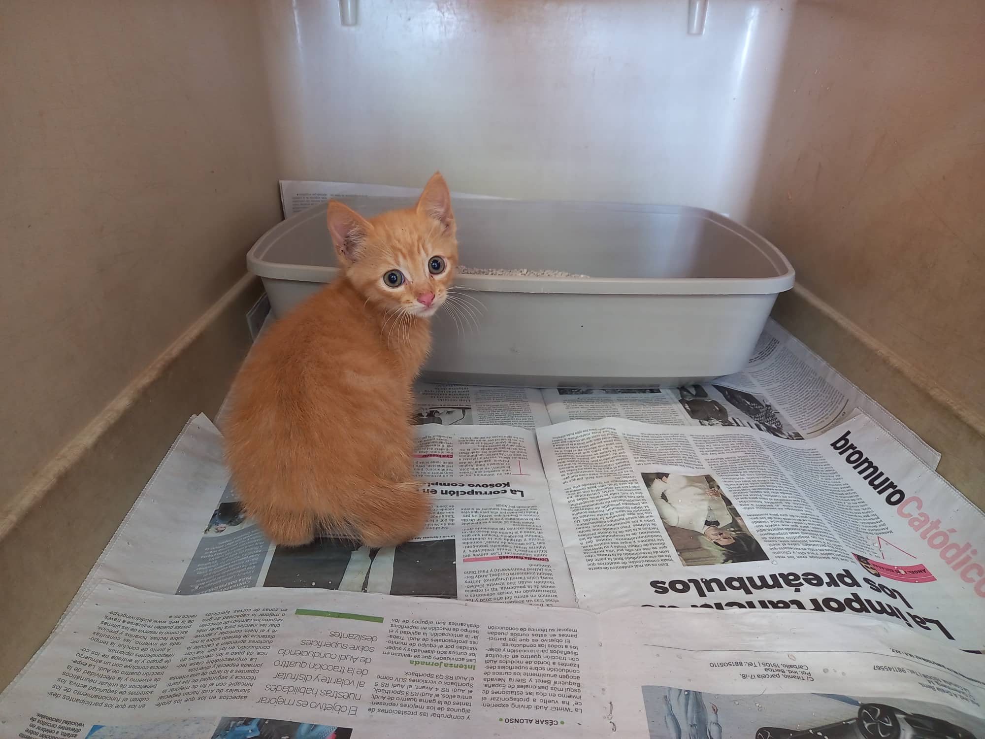 Recollido en Santiago de Compostela, chega moi feble.