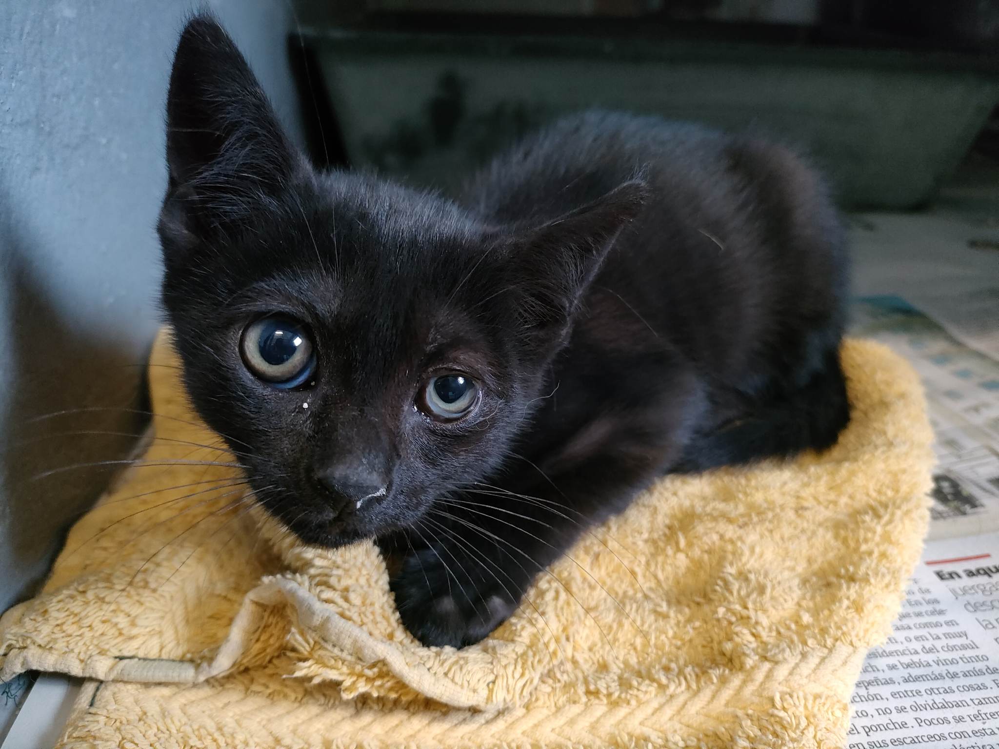 Recollido en Santiago de Compostela, chega moi feble.