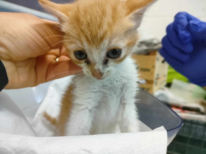 Recollido en Santiago de Compostela, chega moi feble.