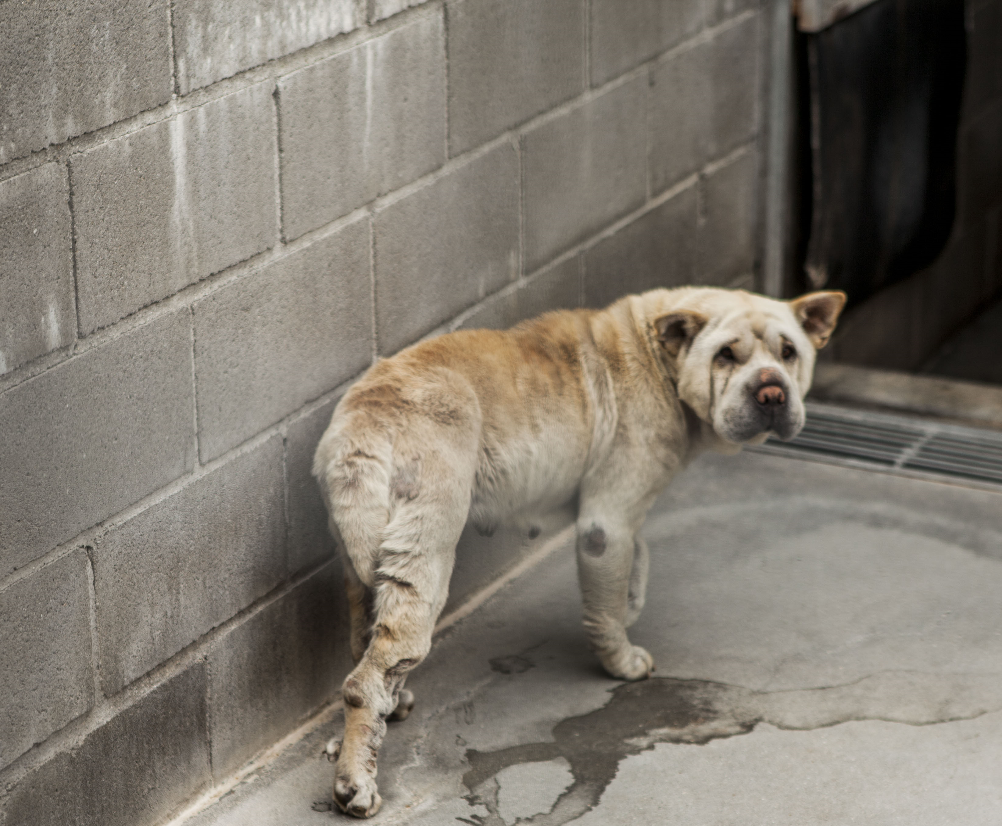 Recollido en Santiago de Compostela, chega moi feble.