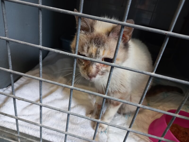 Recollida en Santiago de Compostela. Parece unha gata caseira e chega ferida.