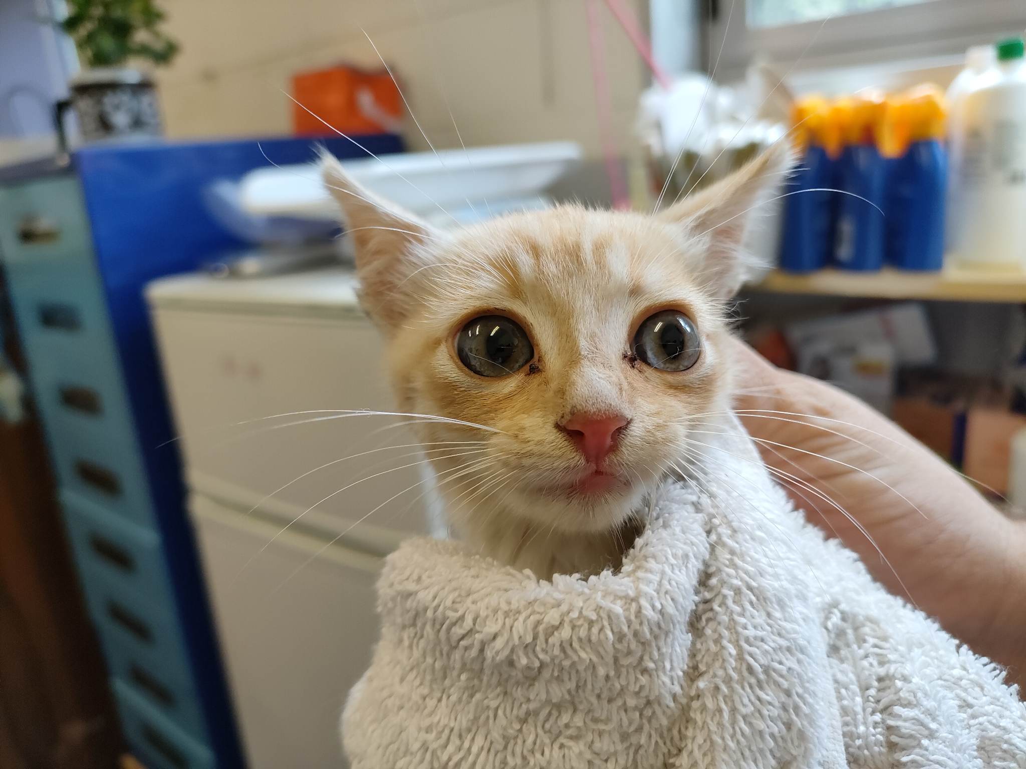 Recollido en Santiago de Compostela, chega moi feble.