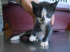 Atopado na estrada, outro gatiño esfameado que perde a súa nai. Chega delgado e deshidratado.