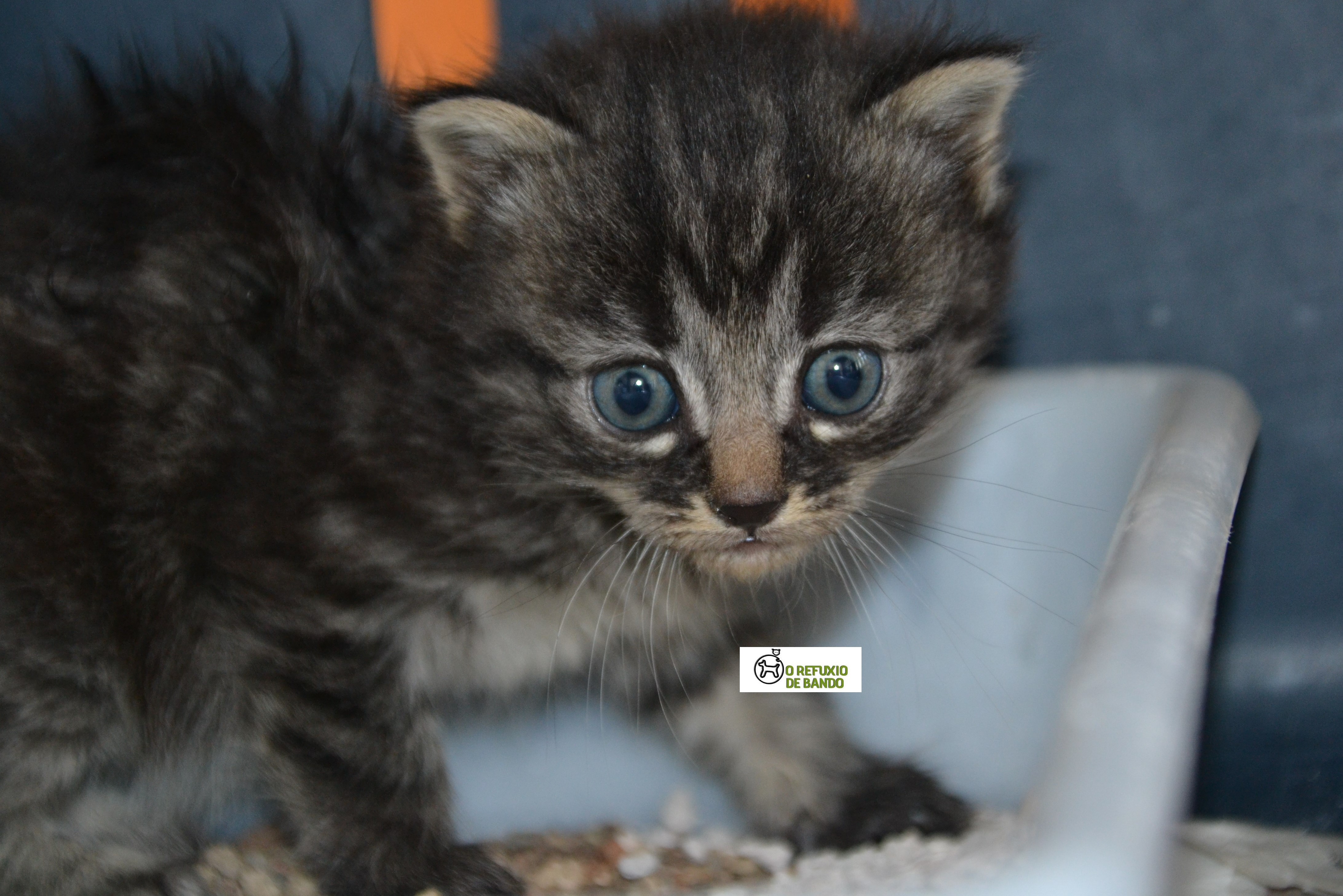 Recollida xunto ás súas dúas irmás nunha leira de Boqueixón. Parecen estar acostumadas á xente polo seguramente sexa outra camada “non desexada” que se podería ter evitado esterilizando a nai. Teñen arredor dun mes e están empezando a comer soíñas.