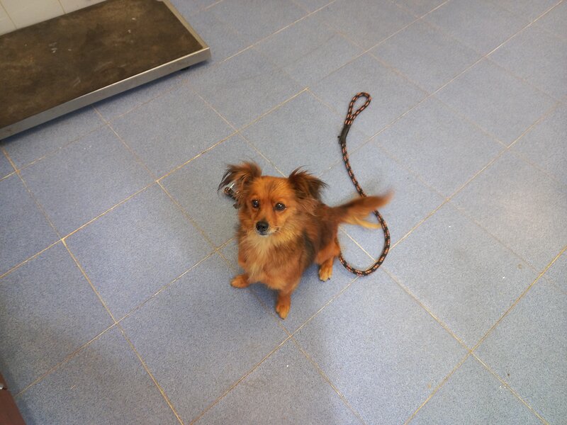 Recollido en Santiago de Compostela, chega moi feble.