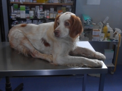 Atopado en R7 de Estrada, pola noitiña, chega moi parasitado con pulgas e carrachas, velliño e feble.