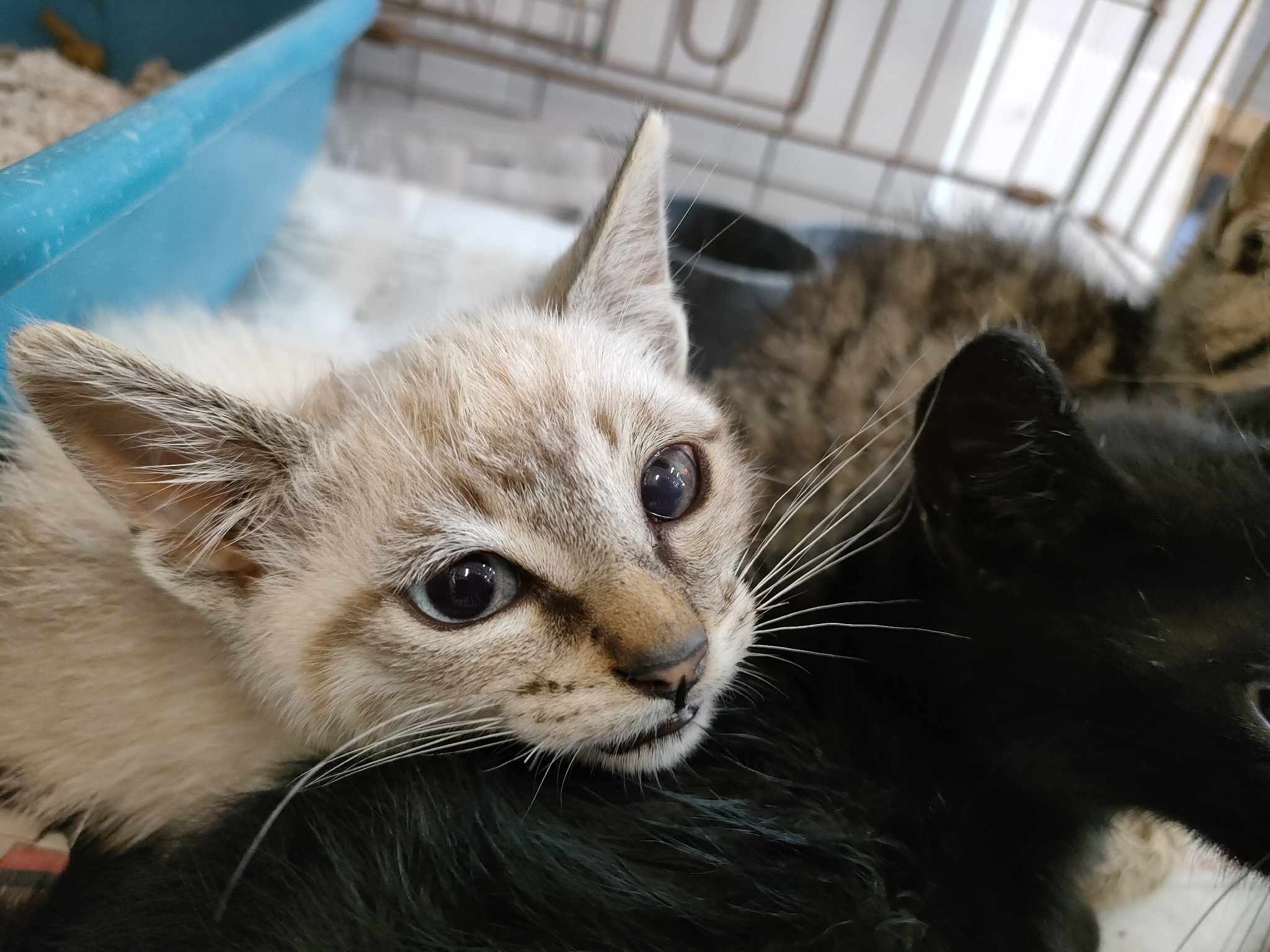 Abandonado nunha caixa de cartón xunto con outros dous gatos.